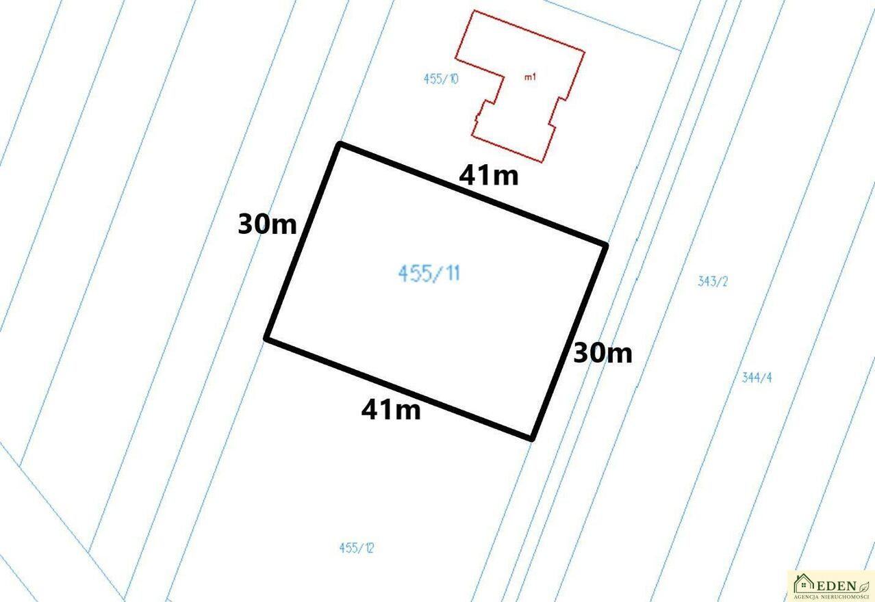 Działka (nr ewid. 455/11) ma korzystne wymiary ok. 30 X 41 m, co daje wiele możliwości aranżacyjnych i pozwala na swobodne zaplanowanie przestrzeni, zarówno pod duży dom jednorodzinny, garaż, budynek gospodarczy jak i dodatkowe elementy zagospodarowania terenu.