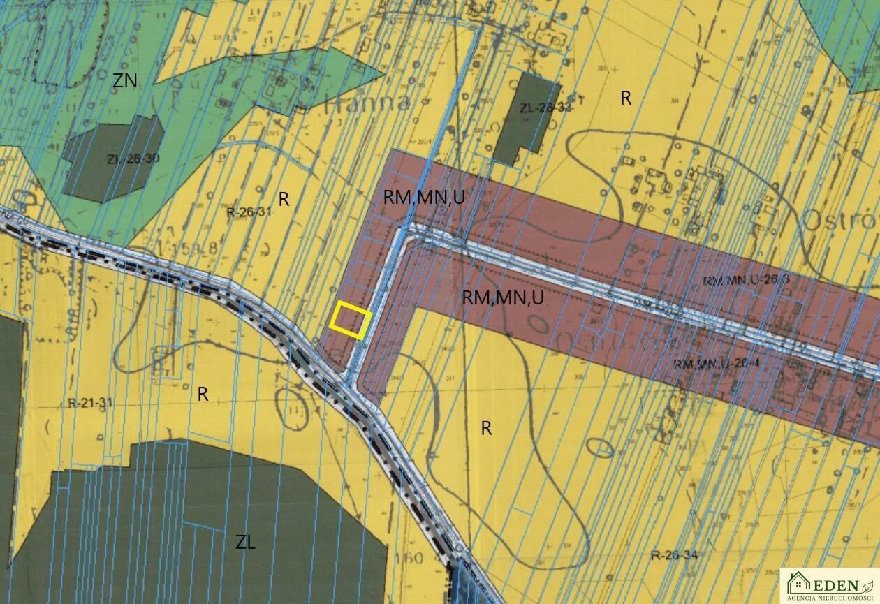 Działka znajduje się na obszarze objętym miejscowym planem zagospodarowania przestrzennego z oznaczeniem RM,MN,U co daje możliwość zabudowy mieszkaniowej jednorodzinnej, zagrodowej oraz prowadzenia nieuciążliwych usług.